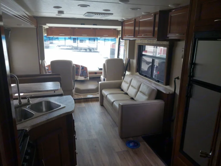 Master Bedroom: King size bed, closets, TV, private master bath with shower and pocket door for privacy.Misc Sleeping: The dining table and couch also convert to beds for additional sleeping. Additional bed on overhead storage.Bunk Room: Twin sized bunk beds .Indoor Kitchen: Comes with pots and pans, coffee pot, toaster, dishes, utensils, knives, plates, bowls, scrub brush, broom, and mop. Also comes with microwave and stove top/oven.Entertainment: Comes equipped with 3 Satellite TVs, DVDs and radio.Bathroom: toilet, sink, shower, toilet paper, and septic tabs.ON Request: Fresh linens(sheets, blankets, pillows) and towels.