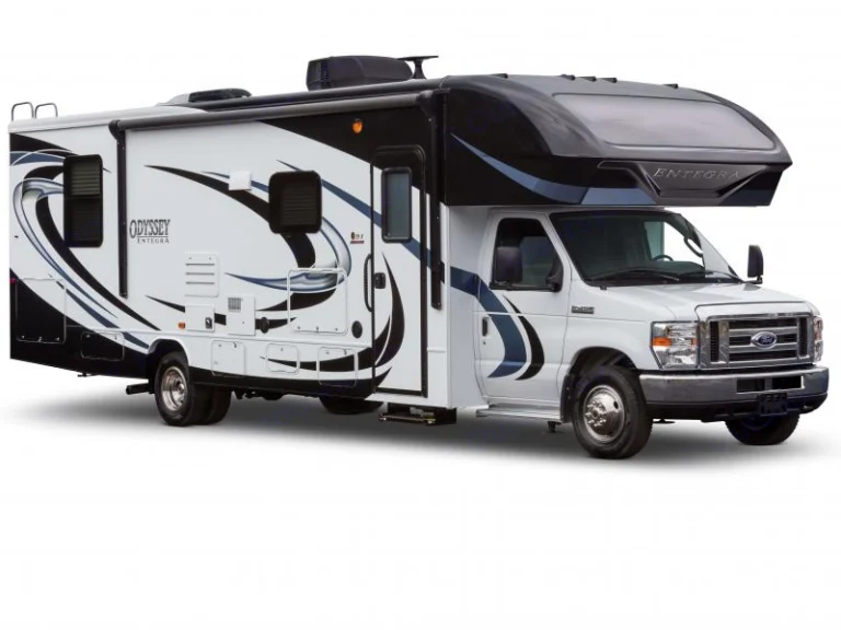 Entegra Odyssey 31F avec lits superposé Ford V-8, Prise 30AMP , chauffe eau , chauffage 30,000BTU , A/C au toit 13.5BTU canalisé , auvent électrique,TV , frigidaire ,TV, stores de nuit , génératrice de 4000watts onan, micro-onde,