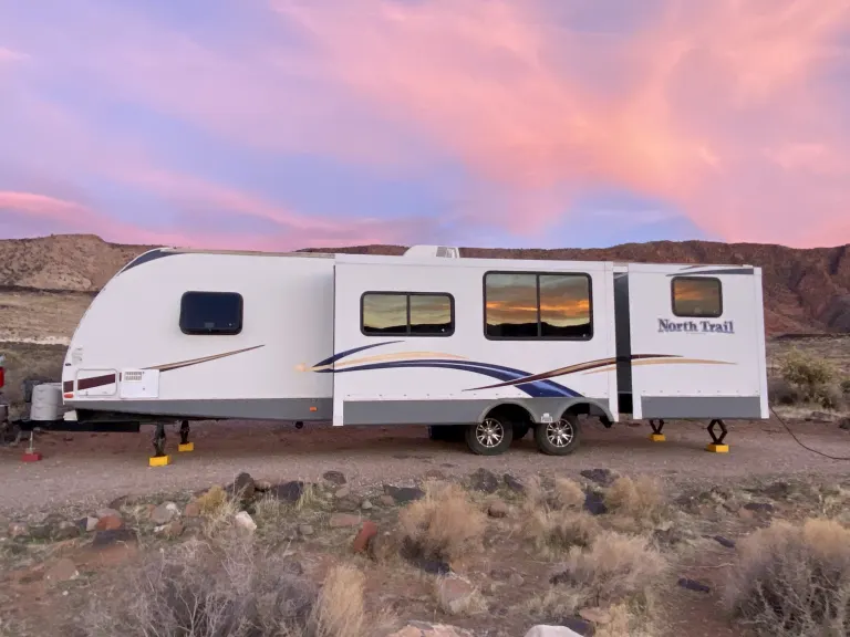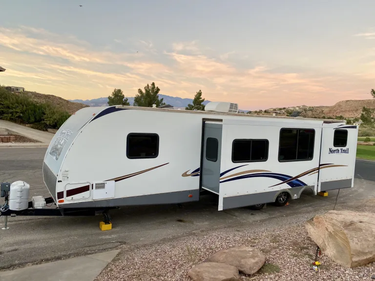 This is a very clean, like new trailer. 2014 North Trail made by Heartland. The Sunny Wanderer will comfortably fit up to 8 guests! Enjoy 37 feet, 3 slide outs, 2 private bedrooms, 2 kitchens (indoor/outdoor), 2 showers (indoor/outdoor) and 2 indoor dining areas!