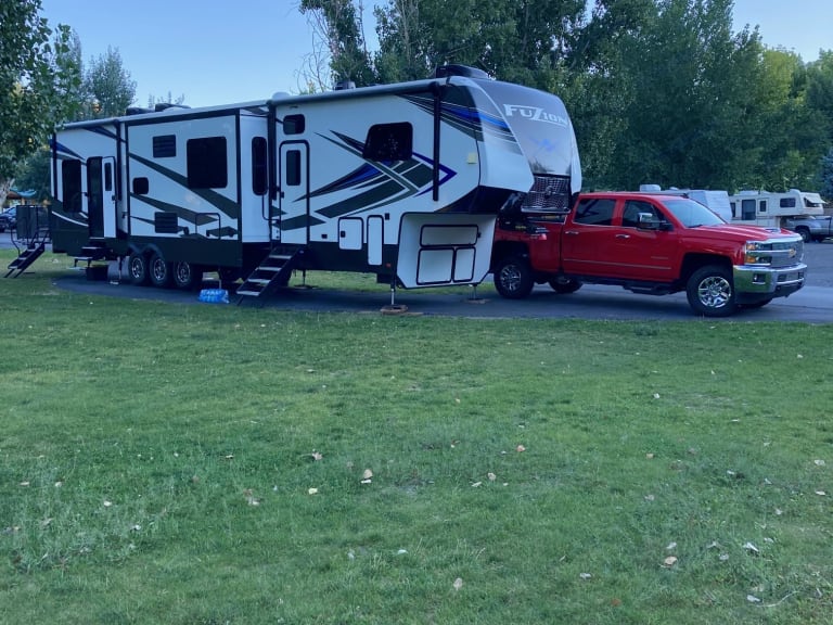 WE DELIVER the UNIT to your reserved location (this locale must be able to fit a 44ft fifth wheel). We are very flexible on your requested timing of delivery and pick up. Our separate trip charges (initial delivery, final pick up, or additional trips per request from you) include the set up and takedown services.