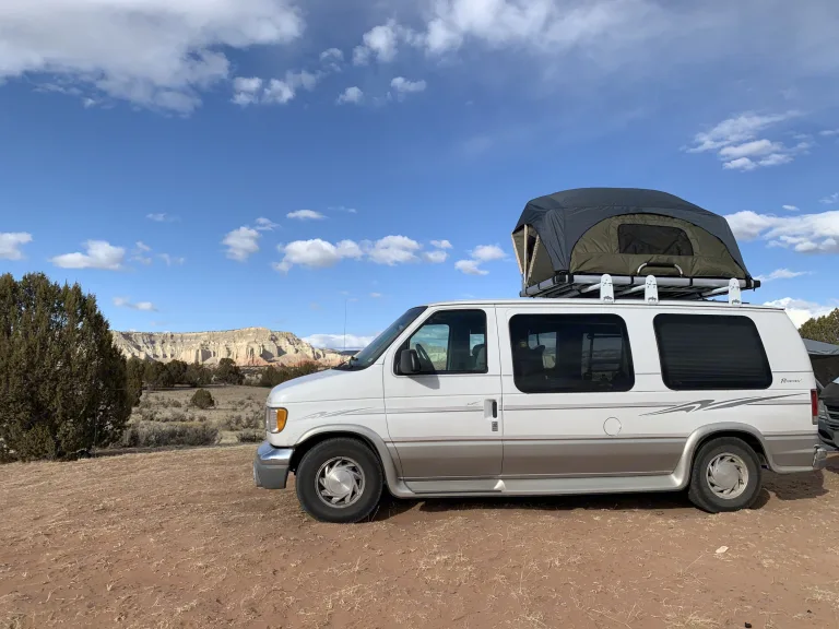 Learn to live again! Get out, go far (or near) and enjoy the outdoors in our 2000 Ford Econoline E150. She may be old, but she’s got lots of power and character to boot.Though she’ll sleep two comfortably inside, why not use the rooftop tent that’s already installed so you can have more room indoors to work, get out of the rain, or get ready for the day? Times Like These also comes equipped with a 2 burner butane stove, new Rtic 45 qt cooler, and a Jackery Explorer 240 battery with solar charger.This lovely lady has Only 116,000 miles, and is in terrific shape. She can do hard things like travel the tough terrain of BLM land in Utah, or navigate through the parking garages in Las Vegas where height restrictions are loose. What she lacks in elegance, she makes up for in power. The V8 engine and Yuge gas tank will get you wherever you want to go. And she even comes with a tow package.Times like these is perfect for that long weekend or monthlong work-from-the-road trip. Really great for families.What's includedAside from the stove, battery, and cooler, we have available plenty of camping related items available. Just let us know what you need.