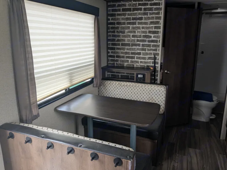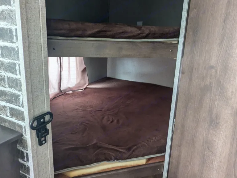 Que vous désiriez profiter du plein air ou souhaitiez passer du bon temps en famille, cet équipement est idéal pour ce type de vacances. Tout pour vous : lit queen en avant pouvant être transformé en divan et bunkbed double arrière ainsi que son coin dinette, elle peut donc accueillir 7 personnes au dodo. Profitez de la salle de bain complète (toilette, douche et évier), eau chaude, air climatisée, auvent, tapis, frigo, lavabo, poêle, chaufferette ainsi que les barres de torsions. Tout est prêt pour votre séjour.