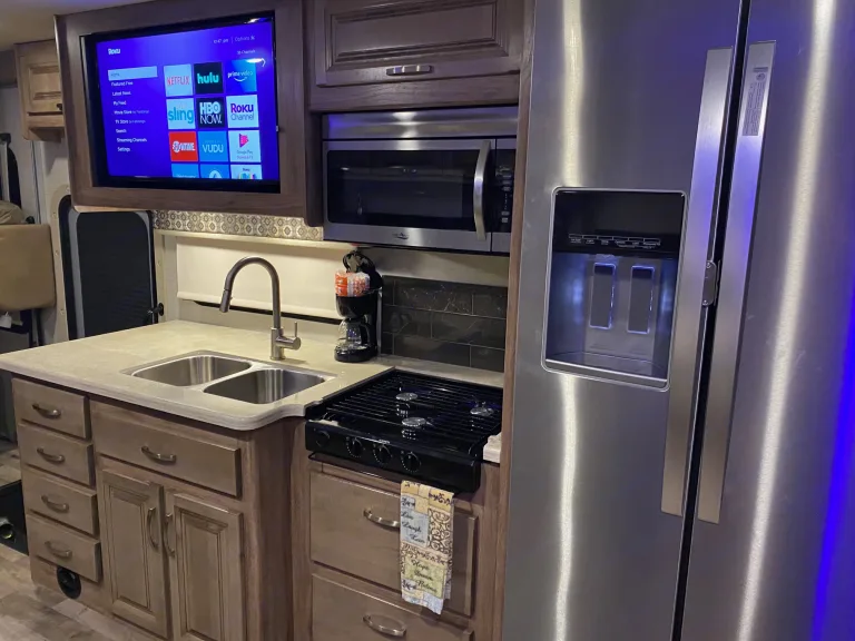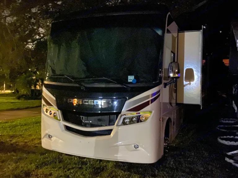 StarLink add-on* for full time internet abilityMany RVs need to be hooked up to "Shore Power" or 50A power or Need to run the Generator to power the fridge, Tvs, etc. With our upgraded system, everything stays powered Except the ACs, heaters, coffee makers, hair dryers. This saves generator time (and cost) and effort when driving, and if the sun is out, the batteries recharge themselves! No Need to plug in or have the food get warm the night before when packing.Added a new King Falcon Robotic Wifi finder/ tuner that with the use of the free app you can download, will auto aim the Wifi antenna to whatever Wifi signal you choose to amplify and repeat it in the RV to all the devices and under a new private secure network. Allows you to easily connect to the wifi from the park and make it stronger (also allows you to login to a login page if required like in a hotel to boost the outside Wifi signal and then you can easily connect to the safe RV network for your devices without the pain of logins and distance problems.Brand new Starlink internet just added. Going on a trip but need to make sure internet is available and dont trust RV WiFi or cell phone hot spots? We can include Starlink for an additional fee.Starlink satellite internet is available for an extra price and can be discussed if interested.Linens for Master, overhead queen bed over cab, linens for 2 bunks, towels, wash cloths, kitchen towels and Toilet paper in both bathrooms, Roku on TVs, poly-carbonate cups, plates, bowls, and silver wear.Industrial grade cleaning done before and after every trip so your vacation will be safe and healthy!This is a large Gas Class A. Its 38' 10" long. Please consider your driving abilities and the size of this RV in your decisions.We do not allow DRY Camping. Camping overnight at a site without hookups.What's included8 200W solar panels, and a 800aH LiFePO4 battery bank (same technology teslas use) and a smart inverter to always keep you powered whether it be battery bank, shore power or generator.Linens for Master, overhead queen bed over cab, linens for 2 bunks, towels, wash cloths, kitchen towels and Toilet paper in both bathrooms, Roku on TVs, poly-carbonate cups, plates, bowls, and silver wear.RecommendationsGreat for local trips to Fort Desoto, or Fort Wilderness at disney, or one of the many RV resorts in FloridaOther things to noteWe do NOT allow DRY CAMPING (CAMPING overnight at a site without hookups.)This is a large Gas Class A. Its 38' 10" long and has a height clearance of 12'9". Please consider your driving abilities and the size of this RV in your decisions.Starlink Satellite Internet is available upon approval and additional fee. This will allow you to have an interent connection wherever you are.NO TOWING OF ANY VEHICLE PERMITTED - Bikes, and scooters on the back are ok though.