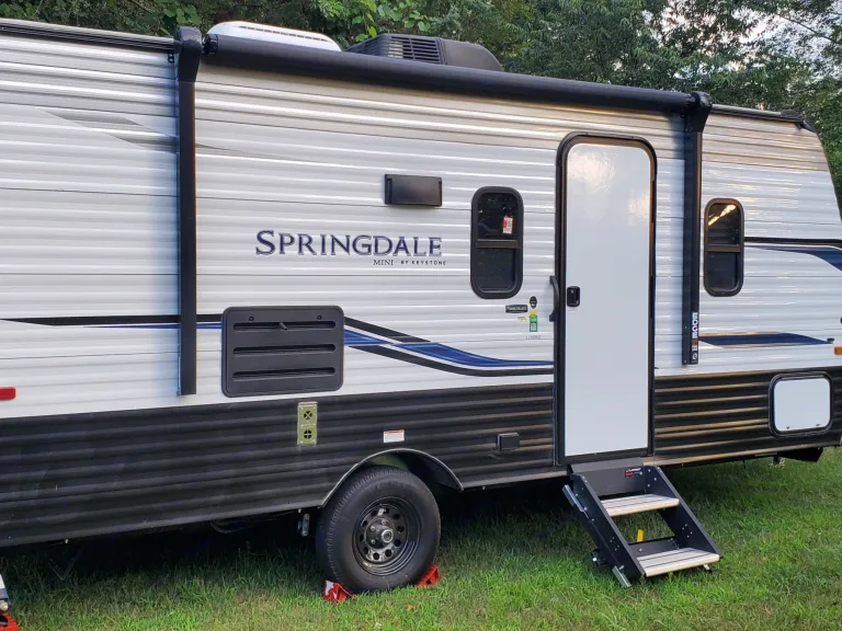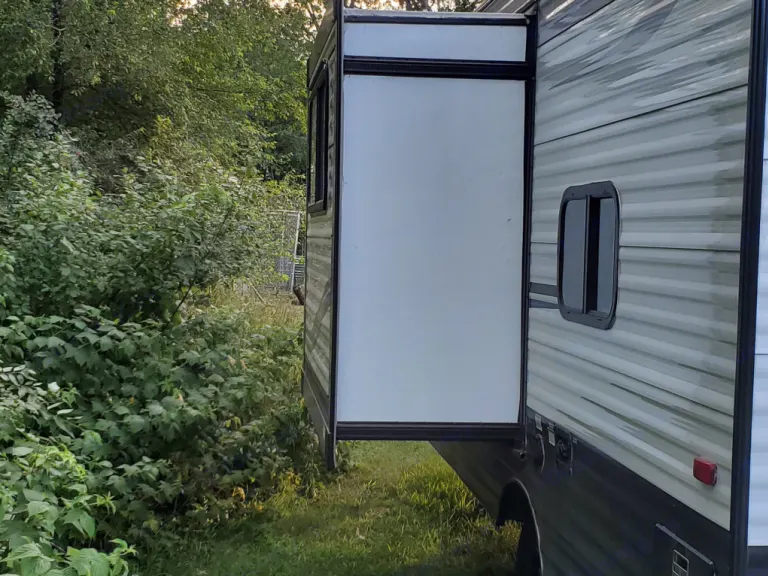 Brand new 2022 camper!! Its light and easy to tow with only a V6 needed! This camper has all the amenities you will need for your families next vacation! Sleeps 5 comfortably, 6 if you have small children. Slide out features provides extra space in the camper and the table turns into a bed (sleeps one adult or two children). Has a Queen size bed with storage underneath and on top. Bunk beds are two singles. All mattresses have waterproof sheet and flat sheet. Kitchen has fridge, freezer, microwave and stove top, all brand new and in perfect condition. Bathroom has sink, toilet and stand up shower. Has brand new tv with access to Netflix (just need to connect to WiFi or use your hotspot). Also comes with a Bluetooth speaker with easy connection to your phone or other electronic device. AC, heat and fan are in perfect condition. Water pump and water heater are top notch as well (27 gallon water tank). Propane tank is provided. Outside the camper has a beautiful awning that lights up in the evening. Also has a fan for when you are grilling. Comes with a decent size storage spot for luggage, chairs and other outdoor activities you want to bring along. We do have lawn chairs available upon request. Thank you for checking out our family RV and happy camping! What's included-Plates, bowls, cups, utensils
