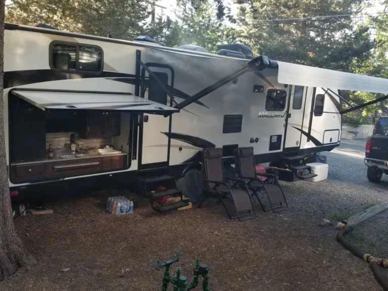 This trailer is perfect for any trip, the mountains, the desert, beach, river, or a RV resort in the city. 2018 Hearland Mallard M32 Ultralight Bunkhouse (36'X8'x11.25'), this RV sleeps up to 10*. RV has 2 doors and 2 fully electric slides (Dry camping requests are Only Case BY Case). Constructed of fiberglass and aluminum frame. Interior is comprised of carpet and vinyl, has 3 living areas (1 master bedroom, 1 rear bedroom, 1 common living area). Master bedroom had full sliding doors, TV, mirrored cabinetry, queen memory foam bed, windows, nightstands with electric outlets and lighting. Kitchen has refrigerator, 3 burner stove and oven with hood, microwave, sink, and has plenty of storage, full bathroom (shower, toilet, sink, medicine cabinet). Living area has leather sofa (convertable 2 sleeper), leather 4 seater U shaped dinette, storage, pantry, entertainment center with TV, Fuerion bluetooth DVD/CD/USB/Am FM radio, indoor/outdoor surround sound stereo system, windows, electric outlets, and lights throughout. Back bunkroom is all carpet and contains onboarding vacuum, 2 ground folding beds, 2 high bunks, drawers and cabinetry, sky light, TV and DVD player, window, lighting, storage, electric plugs, and is closed off by a common curtain. Outdoor entertainment kitchen area (TV, sink, refrigerator, counter and pullout counter, storage). Perfect for BBqing and entertaining guests for an awesome camping. Equiped with essentials or fully stocked and ready to go ($125/night), contact for inventory list, rental has tons of options please contact for specifics. Please include as much information as possible (date/times, location address, event, number of people, etc). ThanksWhat's includedDelivery (up to 30 miles)!All essentials, please contact for list. Fully stocked option is available for an additional $25/night for the first two nights. RecommendationsMy delivery area