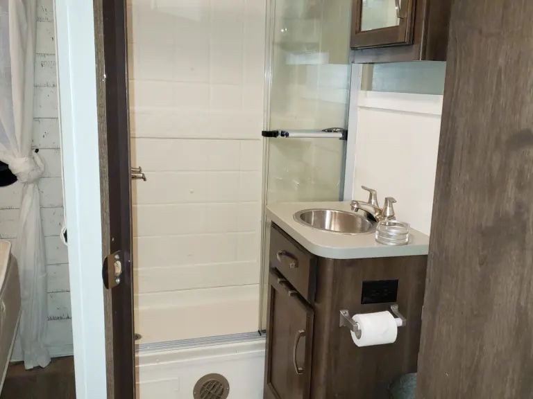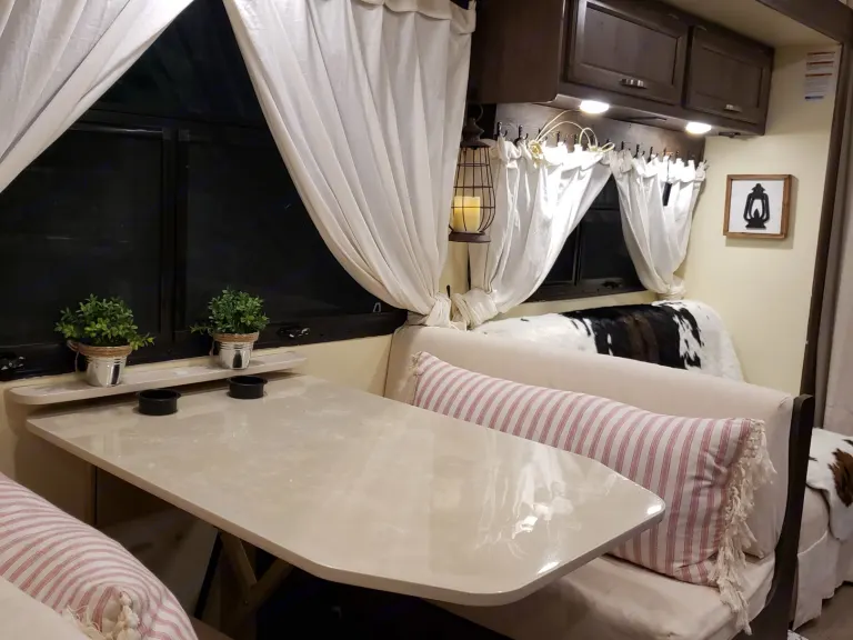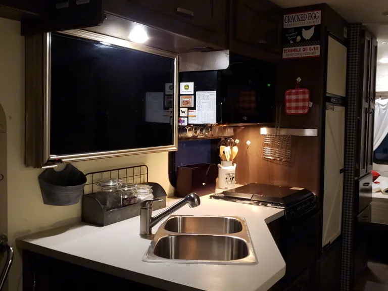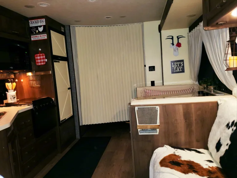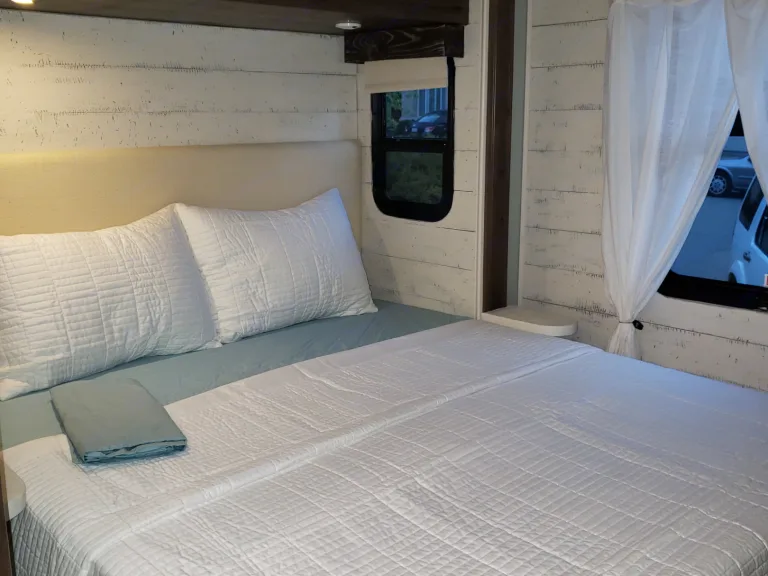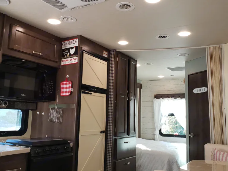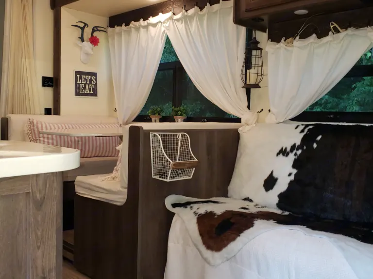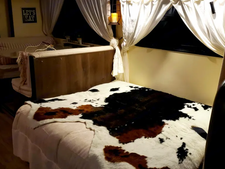 Cozy farmhouse style RV. Easy to drive, includes linens and basic kitchen necessities.