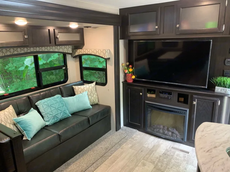 Brand new spacious travel trailer! This will accommodate a large family! It has two bedrooms, a 10 inch memory foam queen bed in the front with crisp linen sheets and four pillows (included) with two side end tables and two large closets! The back bedroom features four bunkbed style beds that all include fresh linens and each have 2 pillows that can sleep two people per bed! The lower bunk in the back room is a couch that transforms into a bed which also has a table that makes a dinette to eat or play games on. Each room features Smart TVs, that have Roku, YouTube, Nextflix and more. The bathroom is by it’s self, not connected to any rooms. It has a full shower, sink and porcelain toilet! (Royalty! Lol!) it comes fully stocked with toilet paper, and all the works of a normal bathroom! We even include free new packaged toothbrushes, new toothpaste, boxed soap and hand soap! WOW!! The front living area features a 50 Smart TV with all the works of YouTube, Netflix, Hulu, and more! The living area has a huge dinette and connecting couch that is great for eating and watching a movie or the ball game especially while the fireplace is turned on just below the TV!! The kitchen has all of the works as a normal travel trailer has, such as refrigerator, oven, microwave, sink and plenty of countertop space. It includes all utensils, pots, pans, cookware, plates, bowls and cups. (Just please wash them on the last day before your departure and put them back away) There is plenty of room in this travel trailer to take as much stuff as you would like to camp. It has a full storage outside to haul all of your patio furniture rugs and such. (We do include a patio rug, 6 lawn recliner chairs, decorations, tiki torches, tiki oil and much more for your use, so you don’t have to worry about hauling anything!!) It has LED lighting outside underneath and on the front of the trailer. It has an automatic awning that releases and re-tracks with the push of a button (which also has LED light installed inside of it). This travel trailer has two slide outs, one in the front with the dinette and couch, and one in the back with the two bunks and couch in the back bedroom. We can deliver and set up for a fee. *all tanks must be emptied before camper is returned/or before we pickup for delivery/hauling. $100 fee will be applied*. We do not include a portable sewer tank, so if your site doesn’t have sewer hookup, you will need to rent our portable tank for an additional $50 to hookup so you can empty the black/grey tanks during your stay.*stock photos are included to show a better view of the layout of camper*