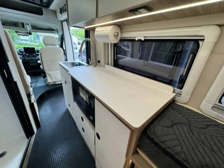 This brand new camper van combines sleek design with practicality, offering a comfortable and versatile travel experience. With modern amenities, efficient space usage, and easy maneuverability, it's perfect for couples, small families or solo adventurers seeking the freedom to explore in style. Whether you're hitting the road or parking in your favorite campground, the Pixel P2.0M provides everything you need for a memorable journey.Sleep in comfort in either queen bed areas- one at the back and one in the pop top.