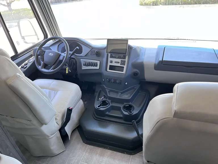 This beauty drives smoothly, and connects to your phone via Bluetooth or Apple CarPlay on the touch screen radio, which also features back-up and blind spot cameras. The on-board generator makes it easy to operate full outlet power and AC units while driving!