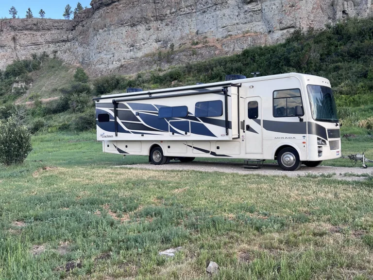 Welcome to your next adventure in this 2023 Coachmen Mirada, purchased new off the lot in Spring 2023! This Class A Motorhome can sleep up to 8 people (plus 2 recliners), with plenty of space. It hosts a private bathroom with a full shower, and a private (King-size bed) bedroom. Enjoy your evenings outside with the outdoor television, or cozy up inside with a choice of 3 indoor TV’s.