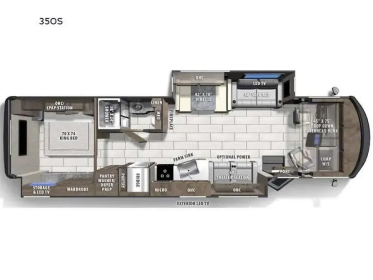 Nice floor plan. Still enough room when the couch is opened out into a bed. Easy to drive.