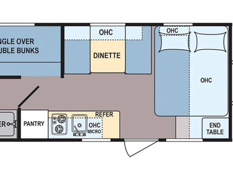 This is a lightweight travel trailer for the family. Can be towed by medium SUV. Dry weight is 3,205 lbs. We use it with our family of 4. It has a bunk bed, a queen size bed and a dinette that converts to a bed. The camper is equipped with a shower. It has a fridge, stove, microwave and lots of storage room. It is also fully equipped with linens, towels, and everything you need for the kitchen.