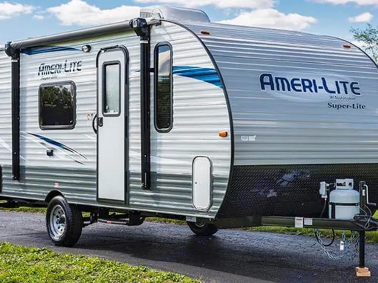 This Gulf Stream Amerilite Super Lite travel trailer is the perfect unit for your growing family. Features a set of bunk beds for the kids to enjoy, plus all of the amenities you need while spending time away from home. This unit is also 8' wide!Step inside and notice the book case next to the counter-top just inside the door on your left. Straight ahead you will find a booth dinette which is perfect for mealtime, or playing board games and cards. Plus, it offers overhead storage for your things. You can fold down the table in the evening to create more sleeping space if you need it.To the right of the door there is a queen size bed with large overhead cabinets that stretch the entire width of the trailer. This is perfect for mom and dad to get a great night's rest and be ready for a brand new day!Prepare and cook light meals and snacks in the kitchen provided with counter space, a single sink, a two burner cook-top with overhead microwave oven, and an electric refrigerator beneath the counter. There is also a pantry for your dry good storage, as well as overhead cabinetry for dishes and things.In the rear corner find a set of bunk beds that the kids will surely love. The opposite corner features a private tub/shower and toilet for added convenience.Requires 2 5/16 Ball and 7-pin power connector to tow.