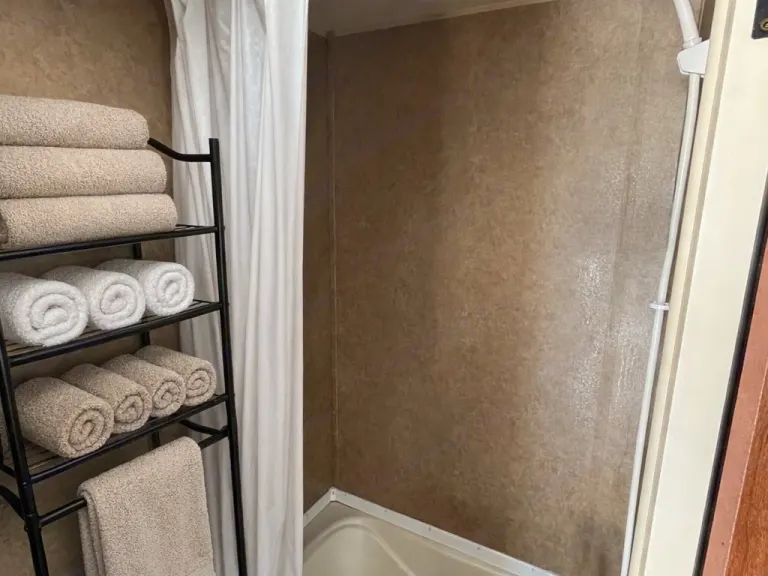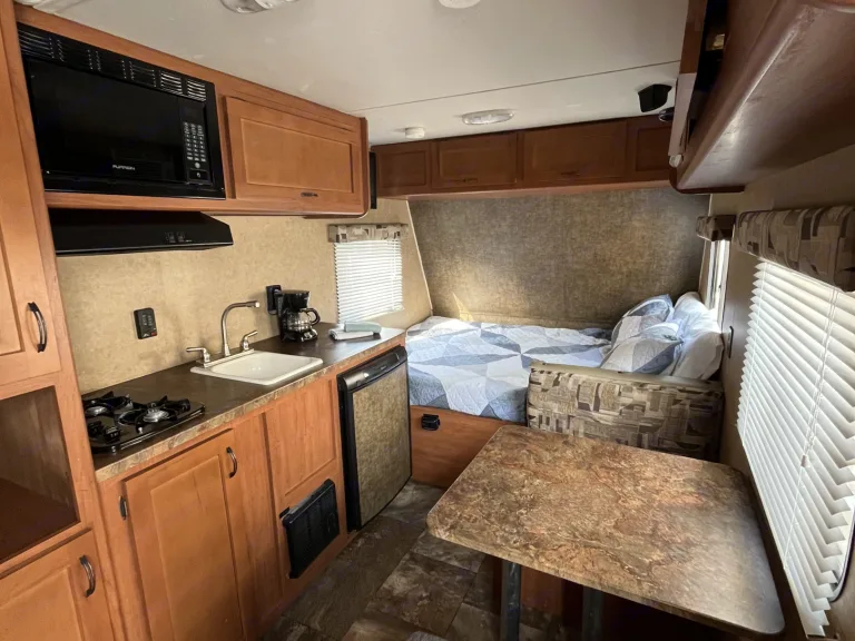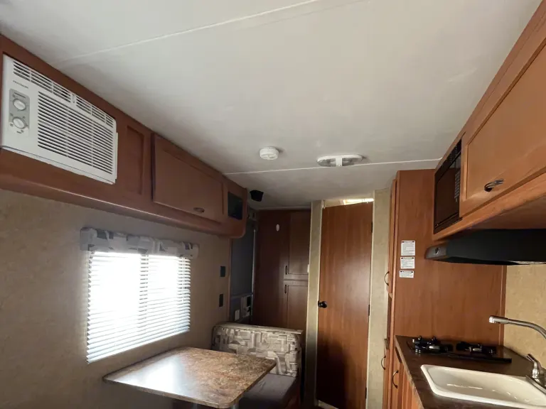 Enjoy a comfortable getaway in this cozy travel trailer that sleeps up to three guests. Perfect for couples, small families or solo travelers, it features modern conveniences: A/C and heat, a well-equipped kitchenette (two burner cooktop, microwave and fridge) and indoor shower and toilet to make your trip easy and relaxing. Pet friendly for dogs up to 50 lbs! Ideal for weekend escapes or even longer adventures—just pack your bags and hit the road!What's included• Basic cooking utensils