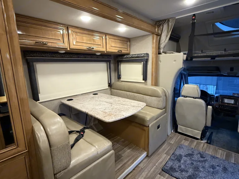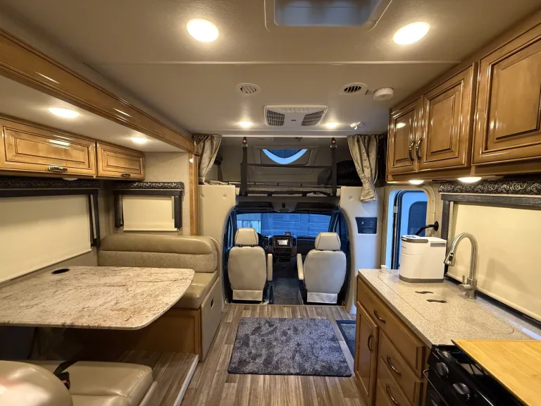 This Motorhome, with a Mercedes Chassis, is a super comfy ride to get you to your destination! Sleeps 5 with a walk around queen bed, dinette conversion and sleeping quarters above the cab. The huge slide creates so much space in comparison to other smaller motorhomes. Fully stocked unit ready to go; just bring your groceries! We have add-on packages available to make your trip a breeze! What's included• Bedding, including pillows & extra blankets