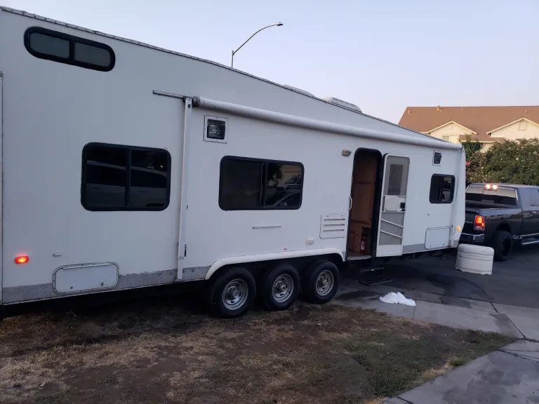2003 Carson Toy Hauler, can fit up to 6 ATVs. Master bed room front, 2 dinette tables that convert into beds, and I bed in the rear. Has onboard generator, shower, toilet, microwave. Sound system. 140 gallon fresh water tank, 40 gallon black water tank, 50 gallon grey water tank. Tows straight as an arrow. 3 axle so it can handle plenty of toys.