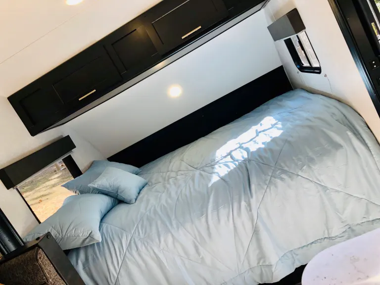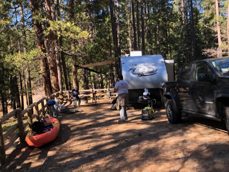 My name is Silvina and my boyfriend's name is Juan. We love to go on outdoor adventures and visit new places. Our travel trailer is a 2022 wolf pup Cherokee, for us its the perfect size for a romantic or a small family getaway. It comes with sleeping arrangement for six; but if you like your space, it sleeps two adults and two kids comfortably. The trailer comes fully equipped with a microwave, a two burner stove, an indoor shower & bathroom, a nice size refrigerator, two bunkbeds, one full size bed, and a dinette that can be turned into a full size bed. Our indoor kitchen is equipped with everything you need to prepare a good meal. It also has an outdoor shower, mini fridge, and built in speakers for indoor and outdoor music to enjoy your jams! This trailer is perfect for your next adventure.What's includedWith the rental you will get an outdoor small grill, and a tailgate size 3x2 cornhole with LED lights. We also have a kayak for two that can be rented for an additional fee and a Generator that you can rent for $10 a day.We do not provide blankets, towels, or pillows. If you would like us to provide them, there will be a $40 washing fee.RecommendationsSly Park, is a charming campsite with a beautiful lake that is located in Pollock Pines, CA. If you enjoy hiking, there is a 9 mile hike around the lake.Other things to noteThere will be a dump fee added upon drop off, if black & grey tank are not emptied and flushed. There will also be an additional fee if propane tanks are not filled completely, before returning our trailer. A non-negotiable fee of $100,if trailer is not returned cleaned.Delivery and set up is available depending on location day/time - extra charges applied
