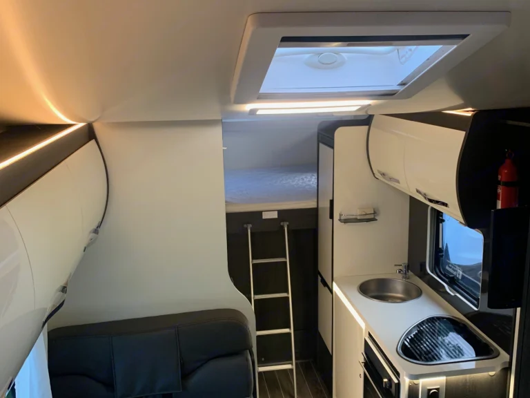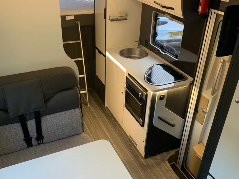 This is the perfect motorhome for family's with its spacious layout. The sleeping arrangements are perfect with the over cab double and rear double bunk beds you can also turn the dining area into the 4th double.If you needed the extra space for the luggage the rear bunk folds away to create a huge garage.