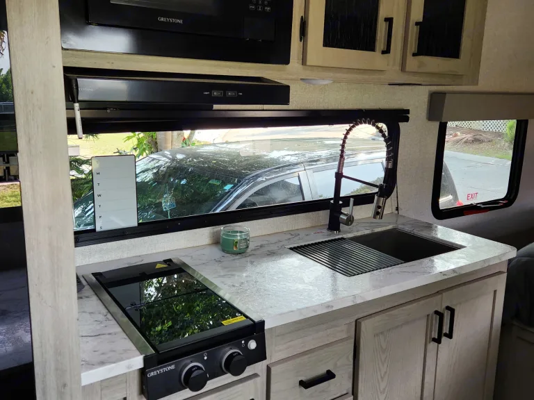 Get ready for your next great adventure! Our newer travel trailer camper rental will be set up and ready when you arrive. This RV sleeps 4 and is available for pick up close to 95 and all your favorite South Florida campgrounds, festivals and events. It is the perfect RV to enjoy all that beautiful South Florida has to offer. From scenic beaches, woodsy camp outs, game days and fantastic events, you can travel them all in comfort and style!What's includedThis RV comes with a queen size bed, kitchenette conversion sleeper and fresh bedding, towels and a fully equipped kitchenette including a propane range, microwave and full size fridge and freezer. And tons of space underneath for all your gear! Hot water provided via INSTAhot tankless heater powered with LP, the refrigerator and AC run on the 30Amp electric supply, usable with shore power or with our provided generator.Other things to notePlease treat our home on wheels like you would your own. Pets are welcome! Please no smoking. And remember to leave any where you visit better than you find it!