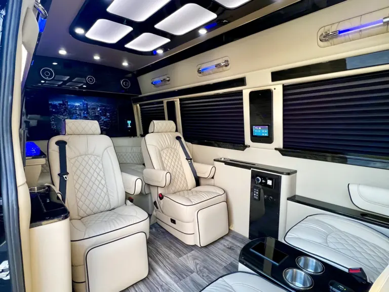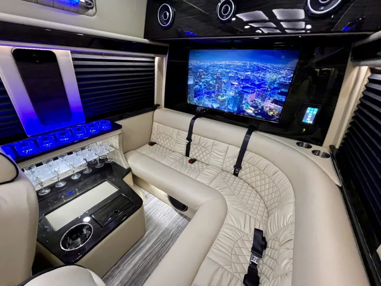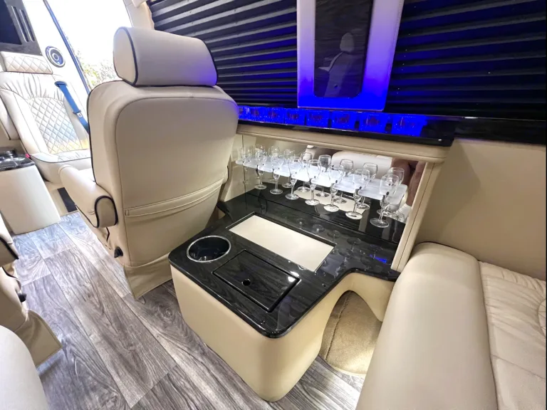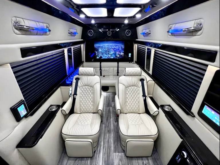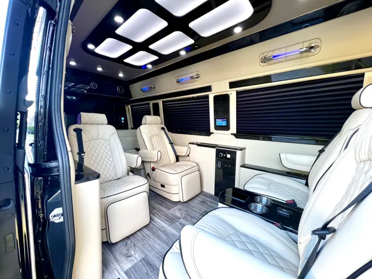 Brand New 2022 Mercedes-Benz Sprinter van comes fully equipped to meet your needs and is designed with comfort, luxury, and style in mind. Perfect for remaining productive while on the road, entertaining business clients, celebrating a special occasion or enjoying a special night out! This Mercedes-Benz Sprinter is the classiest and most comfortable sprinter on the market.What's includedEnjoy 4 plush captain chairs, power footrests along with an ultra-comfortable “J” lounge seating area — a remarkable place to share a few great stories while enjoying drinks from the elegant bar or refreshments from the refrigerator.Not one but TWO TV's so you can watch your favorite movies, live TV, sports, or view presentations. Use one of the custom fold-away lap tables, use your laptop, or play cards.When complete privacy is desired, there is a partition with a power window separating passengers from the driver’s area. Conduct business meetings, have private conversations, make phone calls, and work in peace and quiet without being disturbed.Other things to noteThis does NOT come with a driver. Please send a request for a driver if you are interested.