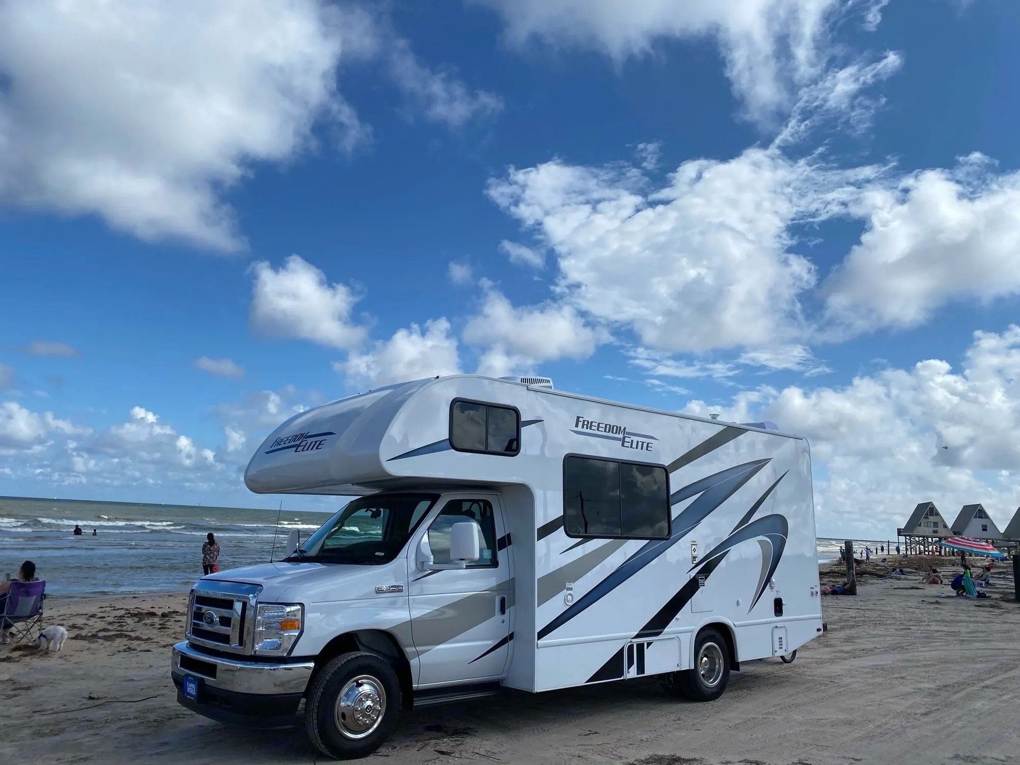 New luxury comfortable drivable RV for families 4-6,only 22 ft long ,back view camera, as its compact size , driving on highway is very stable, it can tow up 8000 lbs , Central AC , leather interior ,foldable dinning table, TV , gas cook range , microwave , refrigerator, and functional bathroom , bike rank for 4 .