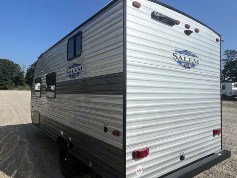 Measuring at approximately 22 feet in length and weighing in at just under 3,000 pounds, the Salem 174Bhle is easy to tow and maneuver, making it ideal for both novice and experienced RV enthusiasts. Its lightweight construction doesn't compromise on durability, ensuring years of reliable use.Step inside, and you'll be greeted by a well-designed interior that maximizes space without sacrificing comfort. The layout features a cozy sleeping area with a comfortable queen-size bed, providing a restful night's sleep after a day of outdoor adventures. The dinette easily converts into an additional sleeping space, accommodating extra guests or family members.The kitchen area is efficiently laid out and equipped with modern appliances, including a two-burner stove, microwave, refrigerator, and sink, allowing you to prepare delicious meals while on the road.Ample storage space throughout the trailer ensures you can bring along all the essentials for your trip without feeling cluttered.The bathroom includes a toilet, shower, and sink, providing the convenience of home wherever your travels take you.Additionally, the trailer is equipped with heating and air conditioning, ensuring a comfortable interior climate no matter the weather outside.Outside, you'll find amenities such as an awning, exterior speakers, and storage compartments, enhancing your outdoor living experience.Provided Items:Towels, washcloths, toilet paper, paper towels, and black tank treatment.Bedding is provided.Dishware, cookware, silverware, and various other utensils.Coffeemaker and toaster.Propane tanks (1 Full tank guaranteed).A refundable security deposit of $750 is required.
