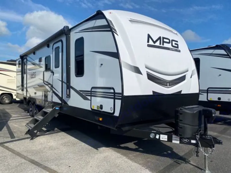 The rear private bunkhouse on this MPG travel trailer is going to be an enticing feature if you like to travel with friends and family! The bunkhouse has a slide out so that there is extra space. It has a futon for relaxing throughout the day and then folds out to a queen size bed at night to go along with the other two bunks in there. With a sofa and booth dinette in the main living area, there is additional lounge space across from the kitchen, and you can even take a full afternoon nap by heading up to the king-size bed in the front private bedroom. It will be so easy to access the full bathroom because there is an exterior and interior entrance, and the entertainment center is going to deliver great fun, especially on rainy days when you can't go outside.