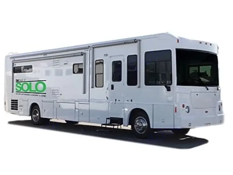 Designed to spoil you with eco-friendly luxury, the Solo features a lounge, wardrobe and makeup studio, private restroom, a large refrigerator and espresso bar and a desk for laptop users. It is optimized with Solar Power to minimize the need for generator usage and features recycled materials, LED lighting, and reclaimed wood furniture.