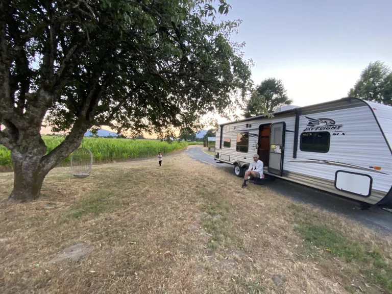 This is the perfect camper for those who are wanting to glamp, experienced campers or newbies to camping!Never camped before or don’t enjoy all the prep work - we have you covered - all you’ll need to do is bring your food, drinks and clothes! We will deliver and set up this beautiful camper directly to your campsite!Ultimate 28 foot camper to enjoy a getaway with your family or friends. We stock it with everything you need inside, including dishes, pots and pans, cookware, utensils, a toaster and more!A separate queen bedroom with a privacy curtain up front. Spacious kitchen, with a dinette and a sofa in the middle and double bunk beds with privacy curtains at the back.The sofa is a pull out and the dinette can be converted into a single bed.We’re super flexible and will work with you for pickups and drop offs.We have everything you could need to camp comfortably! Pick up for the trailer can be arranged at our place or a location that works best for you and your schedule!What's includedDishes including pots and pans, kitchen utensils and cutlery