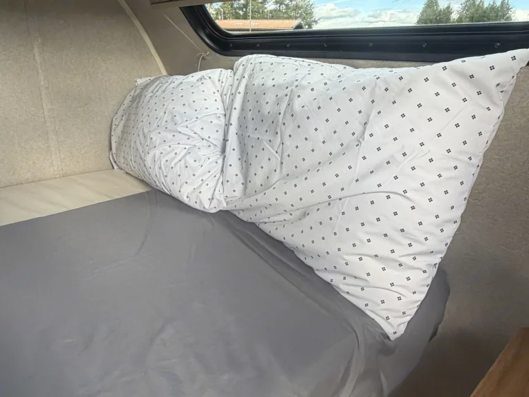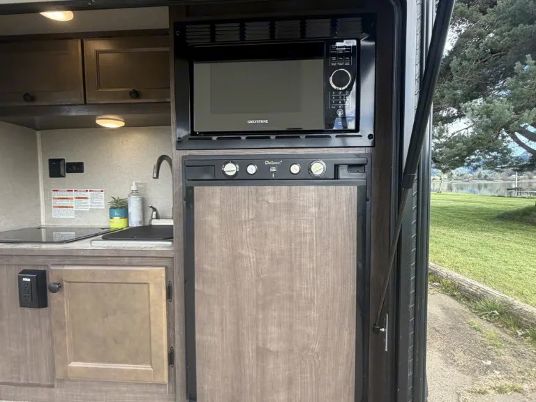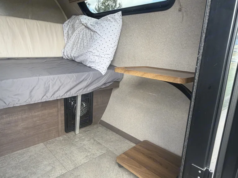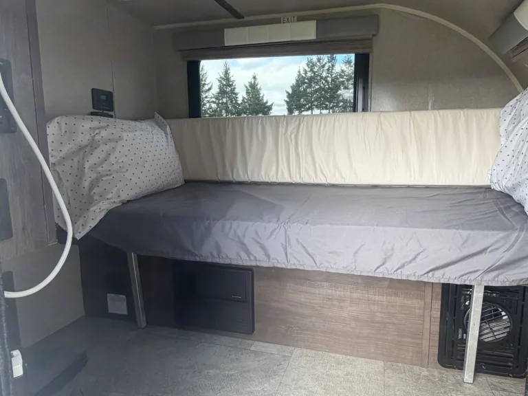 • Inside, enjoy a comfy full bed with A/C and heat, plus all essentials included.