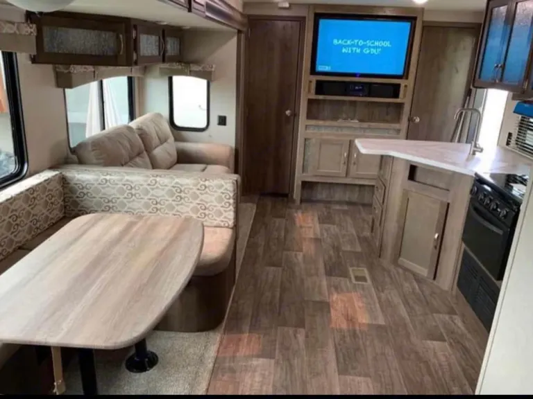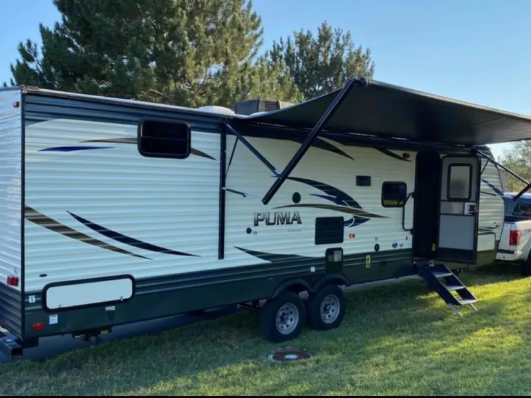 2019 Puma by Palomino (Made by Forest River). 29-Qbss 29 foot quad bunk with a single slide.Includes: Ducted Air Conditioning, Furnace, Refrigerator, Microwave, Water Heater, Tv and cd/dvd player with outdoor speakers, front and rear powered stabilizing jacks, outside shower, power roof vent/skylight in bathroom, tri-fold sofa, powered awning with LED lights, one powered slide-out, solid step system, DC USB charging ports, 4 bunk beds, queen bed, equalizer hitch etc..RecommendationsTake it to a lake, river, or loose yourself in the mountains!Other things to notePlease don’t put the kitchen table down for a bed.