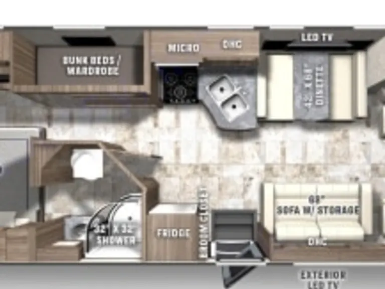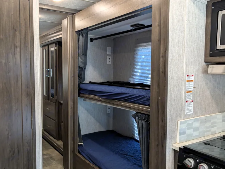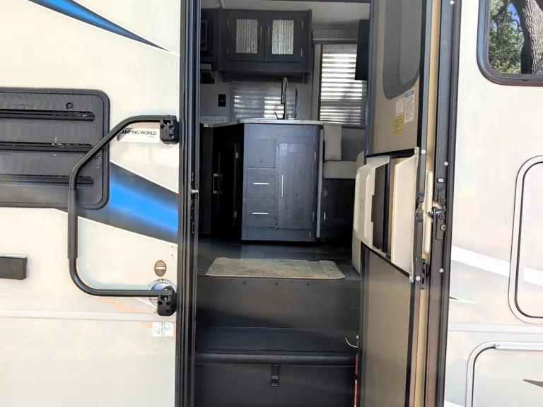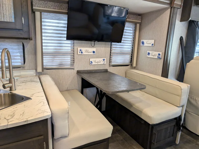 to provide an additional sleeping quarter while maximizing space when not in use. (2) TVs inside and one on the outside make entertaining easy. Large automatic awning for maximum shade. 10" Touchscreen with Apple Car Play, Android Auto, and Bluetooth.