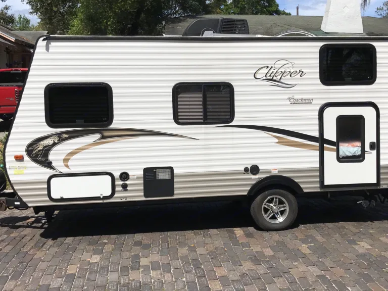 Very popular Tiny Cute 2015 Coachman Clipper Travel Trailer is a lightweight travel trailer which can be towed by most 6 cylinder SUVs or pick up Truck. The travel trailer has Ikea foam mattress queen bed, twin bunk beds and a pull out sofa/table which converts into a small bed. Perfect for a small child. Ideal comfortable 2 adults n 2 kids Sleep 4. The trailer includes a shower and toilet, refrigerator, sink, and oven, microwave, television, dvd player, AM FM radio and awning. Smell like new!