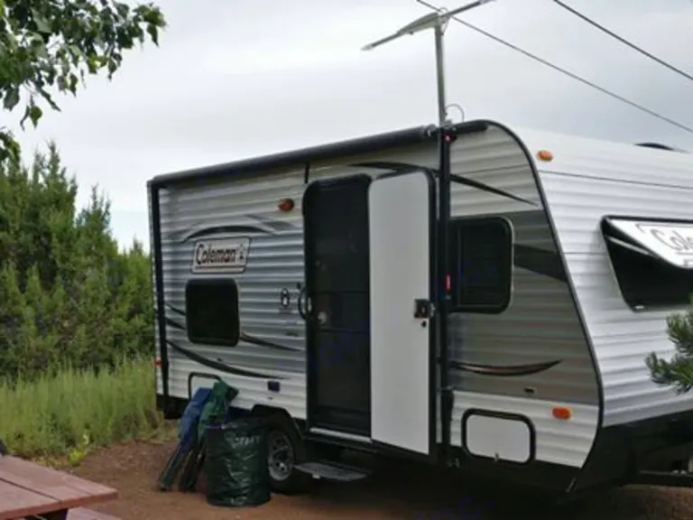This is a sleek 28' travel trailer and can sleep 4-5 people comfortably. This RV still has that "new car" smell!Has plenty of room, without any slides. That means it's much easier and quicker to both setup, and to hitch up and get on the road. Weighing in at only 1307lbs, this trailer is easy to tow.Full kitchen (refrigerator, microwave, oven, stove) TV, DVD/CD player, stereo (inside and outside).Total Beds: