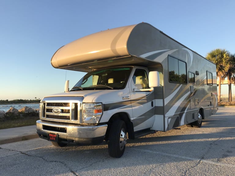 Important Details:Currently the RV is limited to Florida travel only. Our insurance will cover up to 100 miles outside states lines but no trips further out are allowed. We also normally require for renters to have campsites with electric power reserved for the trip. If you need to have it plugged it at the house we can provide an adapter to plug in a standard house outlet. We do not recommend dry camping (camping outside of electric grid), but if you must, please make sure to provide your own generator.Intro:We are local Tampa family that have been in the area for dozens of years. This RV serves dual purpose for us, as an adventure machine for a monthly getaway (time permitted) and as a source of income to keep all the maintenance on it up today. These RVs sure require a lot of investment! And we do our best keep in running and working great. This is our small side project to share the overall expenses, where most of the proceed are reinvested right back into the RV. We also make monthly donations to local charities if we happen to bring in more money then we spent. In conclusion, we always love meeting new nice people and sharing our RV with them!Main RV Features:-Walk around main bed