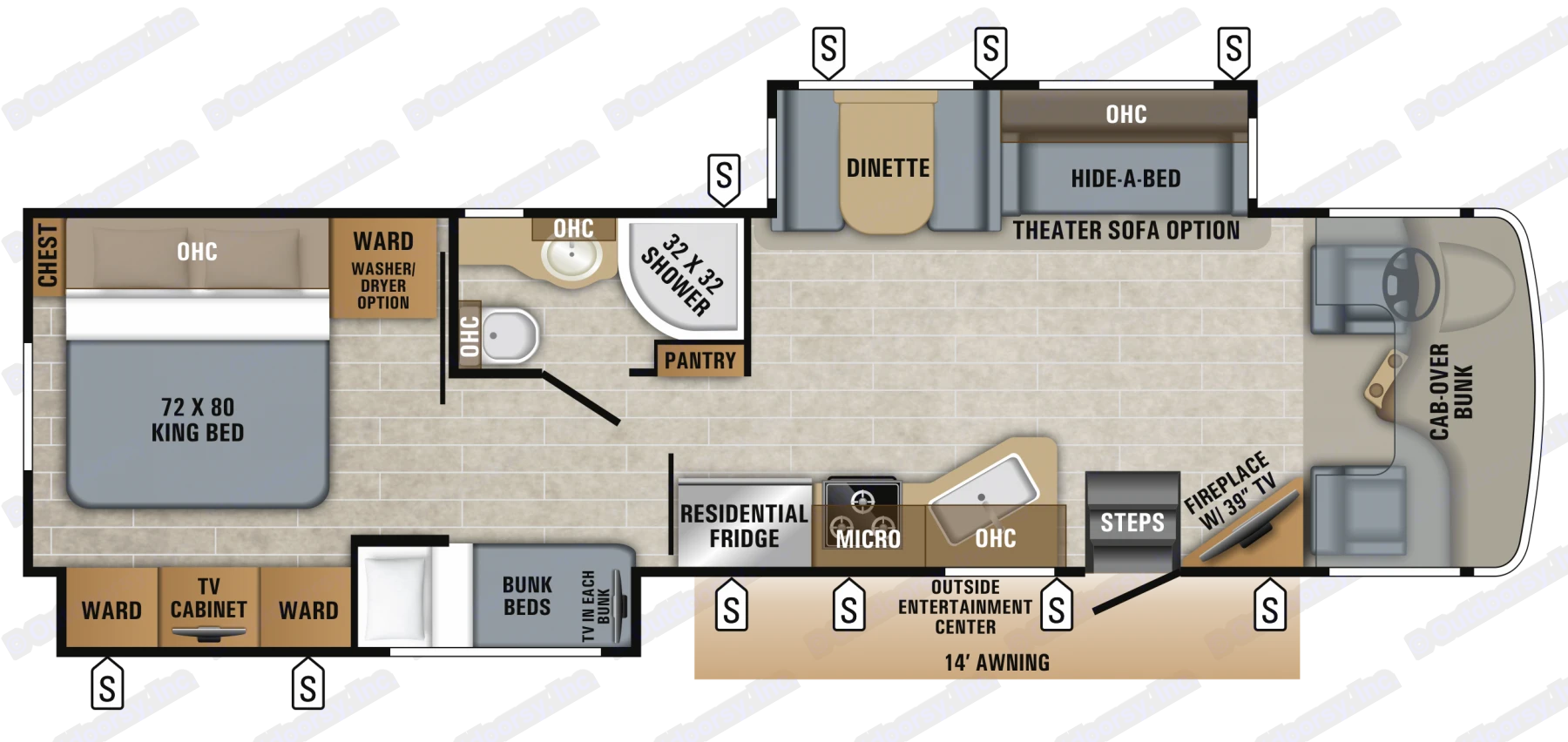 Are looking to take the road is comfort and luxury? This Super Class C unit is well suited for any of your needs. Mountains and steep grades are no sweat for this torque monster. With power coming from the Cummins ISB-300 6.7L, towing up to 10,000 lbs is a breeze. Check some of the key features that makes this RV perfect for your next trip.Exterior
