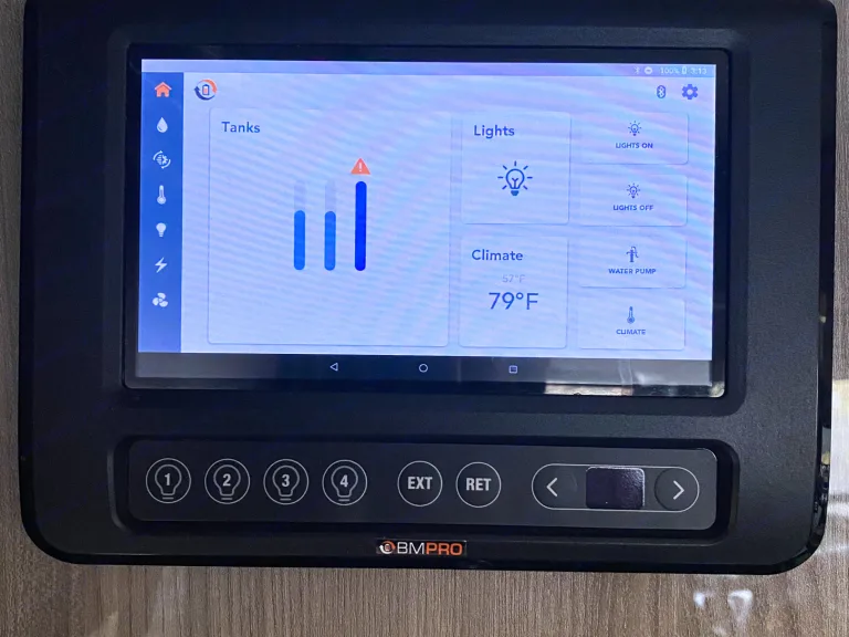 - BM Pro RVmaster control panel; Easily download the app on your phone and control lights, water, fans, and energy all through your phone.