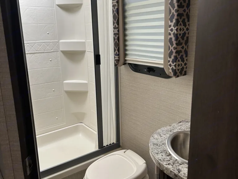 Nice little Rv, easy to drive while still having a good bit of sleeping space and a full size bathroom. Shower is roomier than a lot of class c motorhomes. Has full overhead cab bed with restraining net for kids. Queen bed in the back with privacy curtain. Full outdoor kitchen with fridge, stove, microwave and sink. Comes with protective covers on beds and seating areas. Also stocked with most essentials.