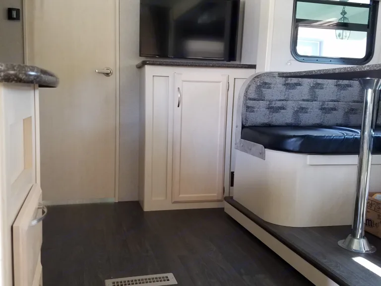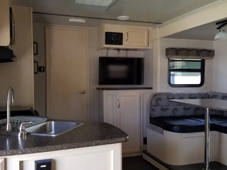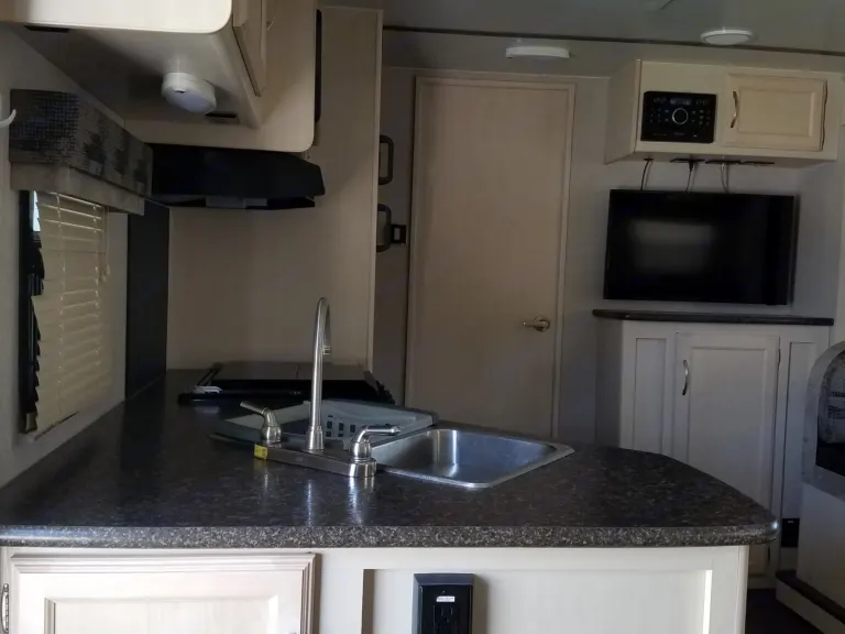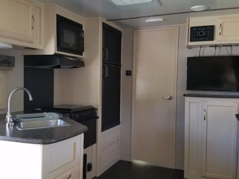 Nearly new 2018 Winnebago, Minnie with largest possible bathroom, ceramic toilet!Outdoor kitchenHeavy duty (upgraded) door stepBlue Ox anti-sway bar systemHydraulic hitchFull propane tanksRear-view camera, while driving and backing into site