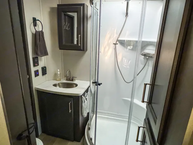 -Use only RV-safe toilet paper (provided) and no flushing anything except waste and toilet paper