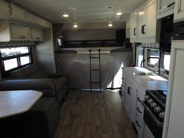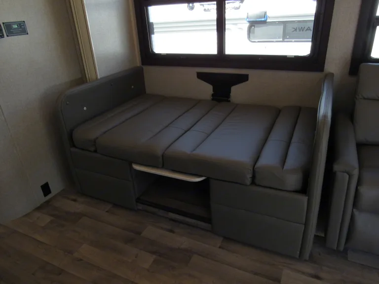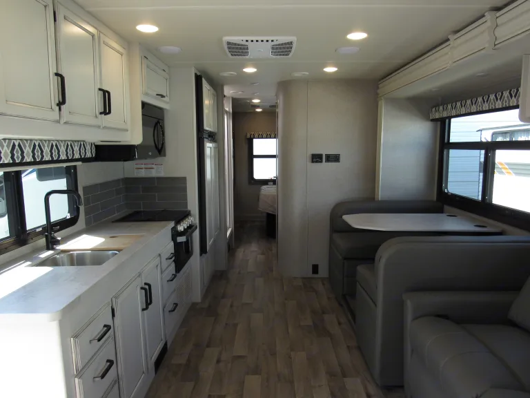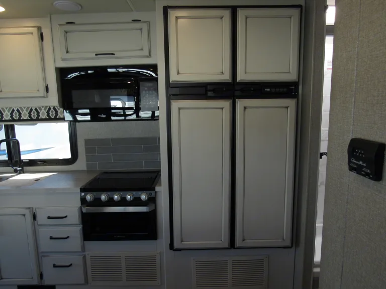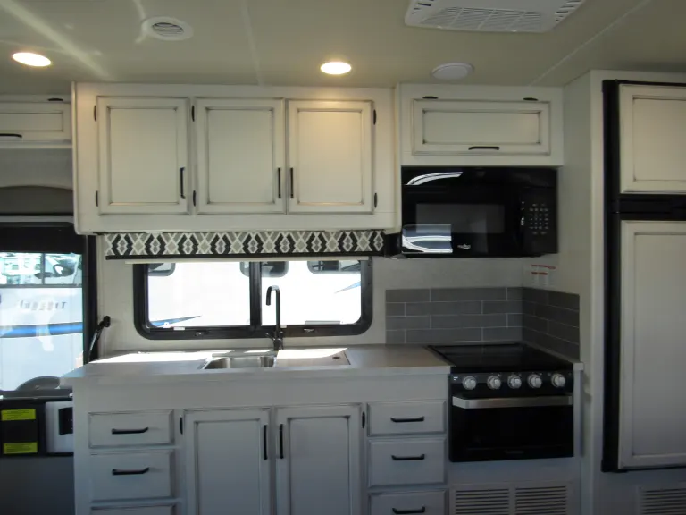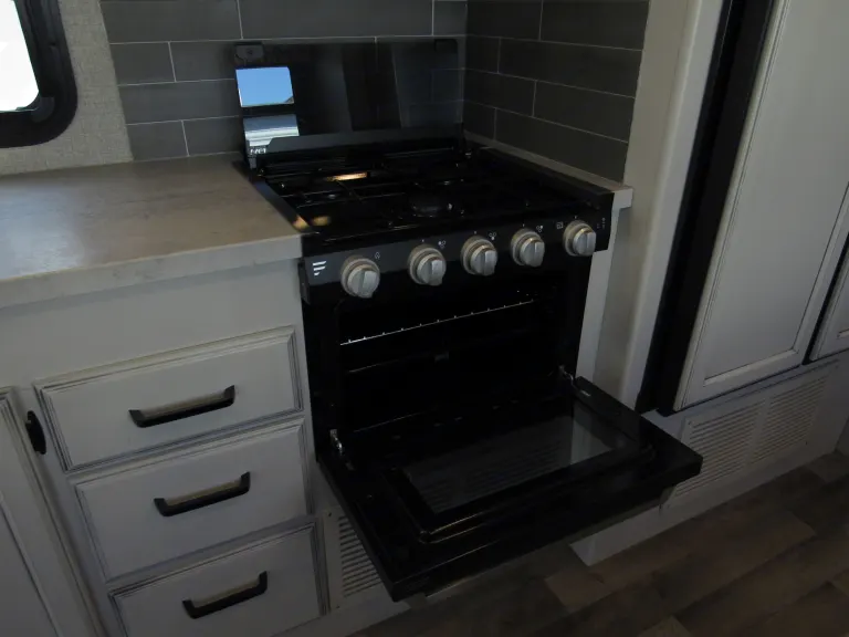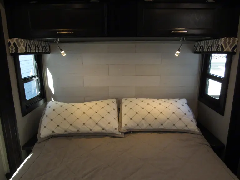 The spacious full kitchen includes great counter space, a fridge, microwave, 3 burner gas stove and a gas oven. There are 2 32" Tv's, (one in the bedroom, one in the living room). This RV includes a back-up camera, a Bluetooth stereo with outdoor speakers, along with an awning to keep the sun or rain out. Just flip on the exterior LED light strip when the sun goes down and you're ready to enjoy some time around the campfire!Before you take our RV out, we will walk through what operating it is like and go through the process of what you will be doing when you setup at your campsite(s)What's includedThis RV is stocked with all your basic needs. Basic kitchen supplies, cooking utensils, cookware, coffee pot and mugs. Please bring your own pillows.