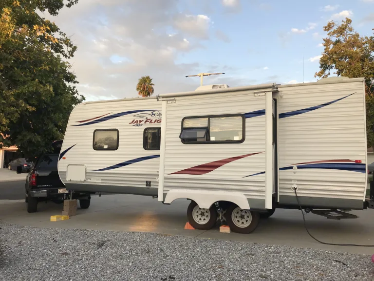 Travel Trailer RV fully loaded waiting for you in Temecula Wine Country! Our 24 ft camper is cozy and comfortable with all the amenities of glamping one could desire. We have a stocked and clean, pet friendly RV available for your next adventure.This Jayco Jay Flight RV will comfortably sleep 4 adults or 3 adults and 2 children. It offers a queen size walk around bed, pull out couch and convertible dinette slide-out for overnight accommodations. Full kitchen and bath with tub/shower combo and water tanks that hold 80 gallons of water. Plenty of storage capacity and a radio/CD player with indoor/outdoor speakers. Two TVs connected to satellite cable are sure to pick up local channels from almost any location. The refrigerator operates on power or propane if camping in a remote location. A/C and heat will run on power cord or generator. Overhead lights will run on battery power alone if needed. The pull out awning will give you a shady patio area to hang out on during those warm afternoons. There are 2 tall closets for hanging jackets and clothes for a trip into town!This camper is the perfect size for anyone new to traveling with an RV in tow as it's size allows for easier maneuverability. Our trailer features a leveling package for towing so we’ll provide a specific tow hitch to any renters looking to haul the trailer to a destination. We are here to answer of your questions and talk you thru successful traveling with this camper. We are also happy to deliver and set the camper up at your chosen location within a set radius from our location, just let us know what you're looking for! Happy Travels. :)