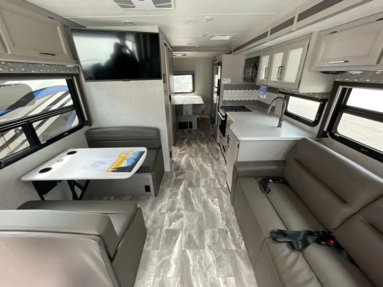 Brand new 2023 Windsport. This 29 foot RV has everything you need to travel, tailgate and explore. Outdoor kitchen, 3 TV’s, side mirror cameras to assist with blind spots, king bed and three other sleeping areas, comfortable captains chairs, pet friendly dog window on the passenger side chair.What's includedLinens, kitchen essentialsRecommendationsThe RV is ideal for camping, tailgating, road trips, etc. With many new features you will feel very comfortable with the new and modern features no matter what trip you’re planning.