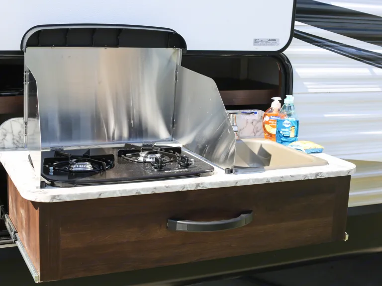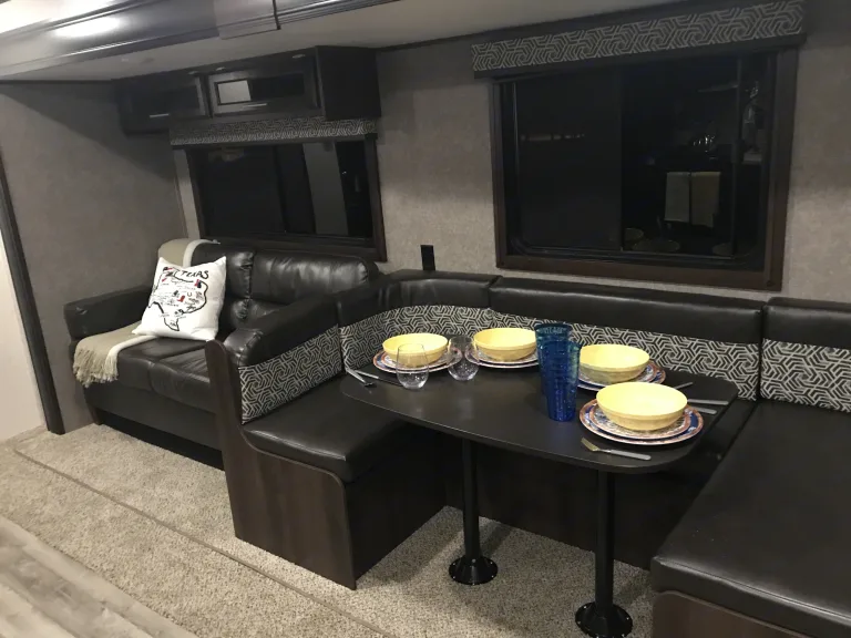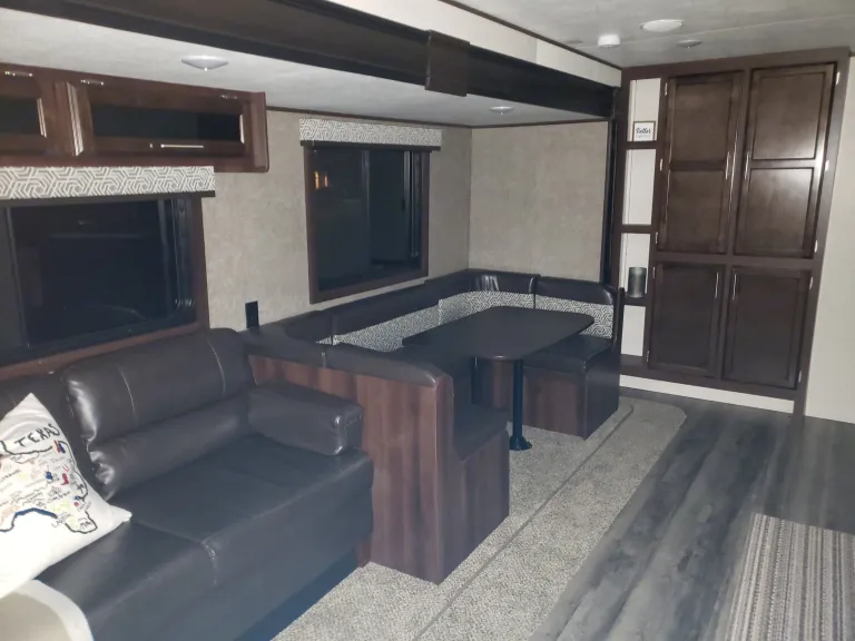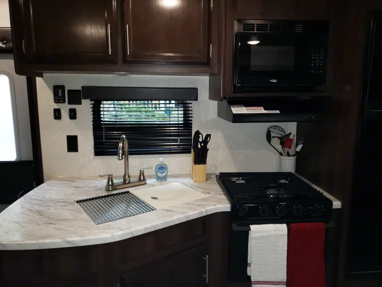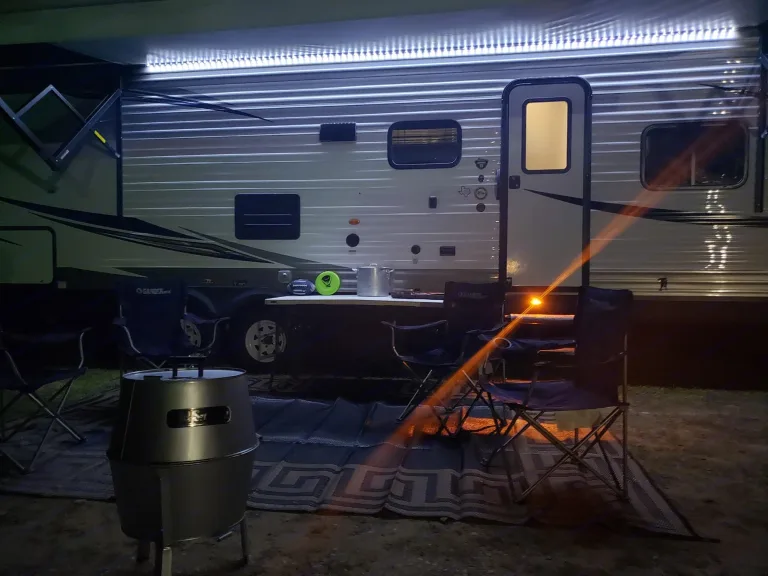 PLEASE NO CLIMBING ON THE ROOF, NO SHOES INSIDE CAMPER IF DIRTY OR MUDDY, NO SMOKING, VAPING and PLEASE CLOSE DOORS AND WINDOWS IF GRILLING OUTSIDE, PLEASE REFILL PROPANE TANKS, EMPTY BLACK AND GREY WATER TANKS