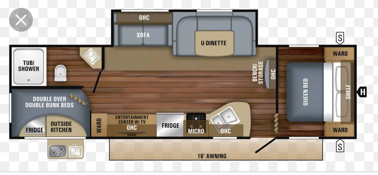Oh, the places you'll go!Thank you for your interest in renting our cute Jayco camper! Let me tell you a little bit about her. I'll start with the outside cool stuff...electric awning with LED lights and outside TV that you can hear with the outside speakers, outside shower to clean up prior to getting inside to the real shower, outside "kitchen" with fridge, sink, 2 burner stove, outside patio mat, chairs and folding table. Moving into the inside, the master bedroom has one of the comfiest beds you'll ever sleep on (you won't want to get out of this bed I bet) and a 32 inch TV (this TV travels from here to the outside with ease) I also provide the sheets for the master bedroom. (You will bring your own pillows) The bathroom shower is one of the biggest I've seen in an RV (easily accommodates 2 adults)! I include 4 towels, 4 hand towels and 4 washcloths, first aid kit, hand soap, and lots of storage.The kitchen is stocked with all the stuff you'll need with utensils, plates, glasses, bowls, (I also have paper plates and cups) knives, crockpot, coffee pot, toaster, casserole dish, cookie sheets, muffin pan, square baking pan, cutting boards, coasters, paper towels, dish towels and cloths, pots and pans, spatulas, peeler, measuring cups and spoons, scissors, tea pot, mixing bowls, colander, basting brush, some spices, salt and pepper, wine opener, and more! If you need something else let me know and I can tell you if its in there!The TV (55 inches) comes with over 300 channels Also has a DVD and some pretty cool movies for you to watch. The RV has one slide so the eating area and living area slide out making the inside very spacious to sit on the floor and play games. There's double bunk beds with teddy bear mattresses (my 16 year old says they're "sick" meaning one of the best beds he's ever laid on! )I have an extra quilt and a few extra blankets ,too, for those chilly nights.I have included inside the RV cards, card games, games and puzzles, and for outside play frisbees, footballs, horseshoes, glow in the dark ladder ball toss game, chairs, folding table, outside mat, and a hammock!If camper comes back not in the way you got it, a 100.00 cleaning fee will come out of your deposit, however, I will wash the sheets and towels for you that I provide Also, please no smoking, vaping or an extra 500.00 for cleaning and disinfecting. I always want it to look and smell great for our next guest.If you are uncomfortable with the towing of this camper, we can deliver, set up and pick up at an extra charge depending on where you want to go! We actually prefer to do this so you can just show up and start your vacation. Your tow vehicle must have liability insurance coverage. At departure, a copy of the tow vehicles insurance card will be needed, the renters name must match the name on their driver’s license and insurance card or be listed as an additional driver. The tow vehicle Must be equipped with an up to date round 7-way pin connector and a 2 inch hitch connection