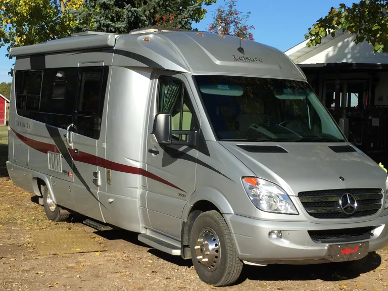 Enjoy high-end luxury while exploring the great outdoors. Sleeps 4. Wooden cabinets, skylight, folding corner bed/couch, dry bath, swivel captain's seats, 3-way fridge, 2 burner range, 150W solar panel, cell booster, TV entertainment center, 5000 lbs towing capacity.