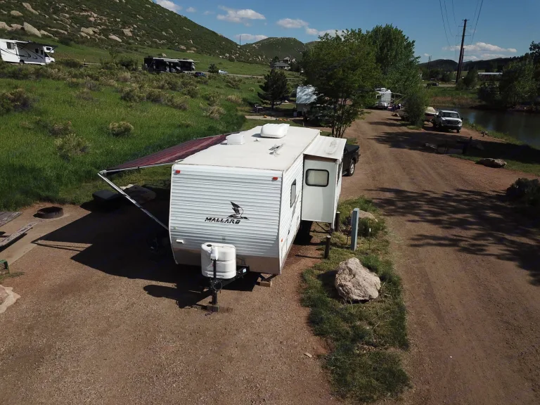26ft. Travel Trailer with a 10ft slide out for the kitchen table and couch. The kitchen includes a 3 burner stove, standard dual fuel refrigerator with freezer, two basin sink and microwave. Double 30lb propane tanks keep you running for the whole stay. There is also an available Coleman road trip grill that connects to an external propane outlet for even more cooking room (additional charge applies). A full size awning covers both front and back doors. This RV sleeps up to 3 adults and 2 kids comfortably in the queen bedroom, fold down kitchen table and couch. It also has plenty of floor space for another twin air mattress or sleeping bags. You can stay fresh with up to 40 gallons of fresh water for cooking, washing or using the shower and bathroom facilities. Heat is provided by propane and AC is run on electric. Weight distribution hitch available for light duty trucks and SUV towing.