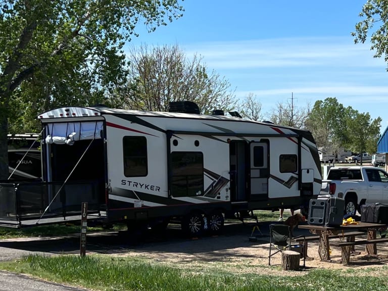 Newer Toy Hauler! You will enjoy the ample comforts and sleeping space with our rig. Please see pictures and reach out with questions. You must have experience and a capable vehicle to rent. We also offer delivery!Sleep 8 total. 1 King bed. 1 queen bed. 2 fold down beds.The camper comes with all you need for a great trip.What's includedKitchen dishes (pots, pans, plates, cups, silverware etc)