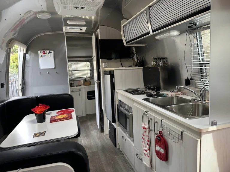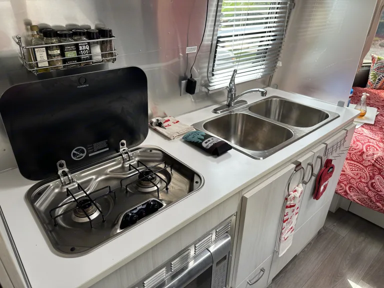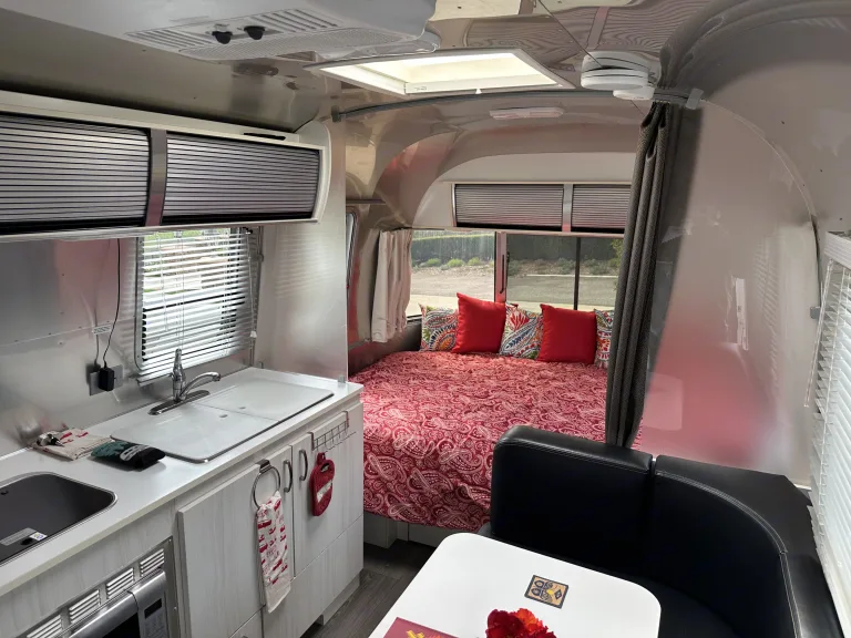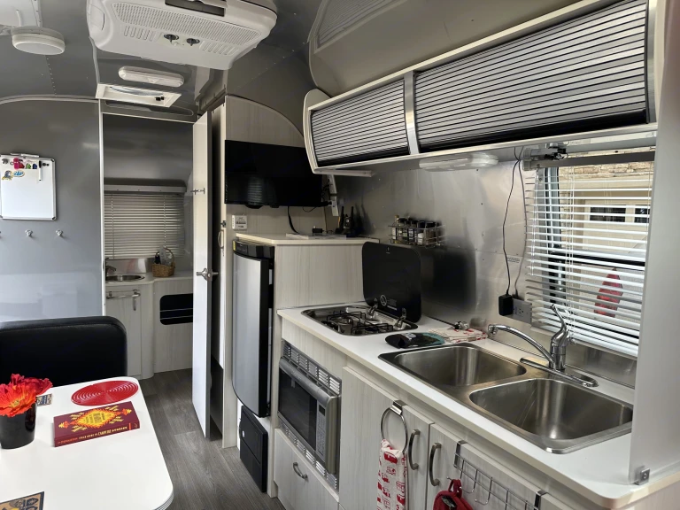 Like new Airstream Bambi Sport 22FB. This is the largest model in the Bambi series and the most popular floorplan. Bambi simply means a single axle lightweight Airstream that is very easy to tow and maneuver.The 22FB has a queen bed in the front with a full bathroom in the back meaning that you are not sleeping directly next to the bathroom. The dinette area coverts to a bed ideal for two children.The bathroom itself is perfectly laid out with a toilet, vanity, sink, and a separate walk-in shower.Every square inch of this Airstream is purposefully designed to maximize space and comfort. There is plenty of storage in the closet, overhead cabinets, kitchen area cupboards, and under the bed and dinette seating.This Airstream is jam-packed with features and creature comforts including a refrigerator that automatically switches from electric to gas, two-burner stove top, double kitchen sink, microwave/convection oven, heat, A/C, dual batteries and propane tanks, solar charging system, entertainment unit with tuner, DVD player and Bluetooth. 32" TV with wireless sync and a large rollout awing.Our Airstream comes fully stocked with fresh sheets, blankets, pillows, cookware, glassware (plastic actually) French press coffee maker, cooking and eating utensils, dishware, paper products, cleaning products, an outdoor rug, small outdoor table, two Coleman camp chairs, and a hammock. We've even included a bag of our favorite local coffee. Just bring your own beach and bath towels! Please see the list of optional rental items below.Hookup, towing, and setup is a breeze with this trailer's electric tongue jack, weight distribution hitch with sway control, rear backup camera on trailer, electric brake controller, leveling blocks, wheel chocks, and four corner stabilizers. Everything needed for electric, fresh water, and sewer hookup included.We love our iconic Airstream and look forward to sharing our love for outdoor adventure with you!What's includedOur Airstream comes fully stocked with fresh sheets, blankets, pillows, cookware, glassware (plastic actually) French press coffee maker, cooking and eating utensils, dishware, paper products, cleaning products, an outdoor rug, small outdoor table, two Coleman camp chairs, and a hammock. We've even included a bag of our favorite local coffee. Just bring your own beach and bath towels!We also have plenty of camping accessories and toys available to rent for an additional fee including: Yakima roof top box, soft rooftop cargo carrier, kayaks, inflatable paddle boards, boogie boards, beach chairs and umbrella, propane firepit (many camping locations are not permitting open fires), small gas grill, outdoor cook table with sink, and Coleman stove.RecommendationsOur Airstream is the perfect home away from home for getaways to the beach, lakeside camping, wine tasting weekends, and mountain hiking trips. We recommend joining Harvest Host. For a modest membership fee, you have access to thousands of free single night stays at unique vineyards, farms, breweries, and museums throughout the country. These stays make a great add on to any trip. Other things to noteWe truly want you to have the best possible experience possible renting our Airstream. All we ask is that you follow a few simple rules:*No smoking or vaping or any kind in the trailer.*Even though we love our furry friends, we do allow pets in the trailer.*The Airstream cannot be rented for use at festivals or tailgating.*Please keep the trailer clean during use.*No open flames other than the propane stove burners are allowed in the trailer.*It is critical that you closely monitor the levels in the black and grey water holding tanks. Tanks must be dumped when they reach no more than 85%.*We know that occasionally things break or don't work properly. Please let us know is something unexpected does happen so that we care repair or correct the issue for the next guests.**Most importantly, "Have fun and create some lifelong memories!!!"