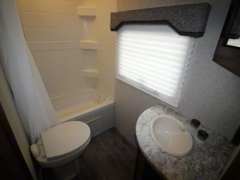24 Foot Trailer (28.5ft bumper to hitch) dry weight of just 5,289 lbs, with Sleeping for up to 8 People, Outside Kitchen, Full Kitchen and bath room and all the options that make camping an enjoyable experience and not hassle: Power Awning, Power Slide-out, Exterior Shower, Black Tank Flush, Heated and Enclosed Underbelly, Gas/Electric Water Heater and many more!